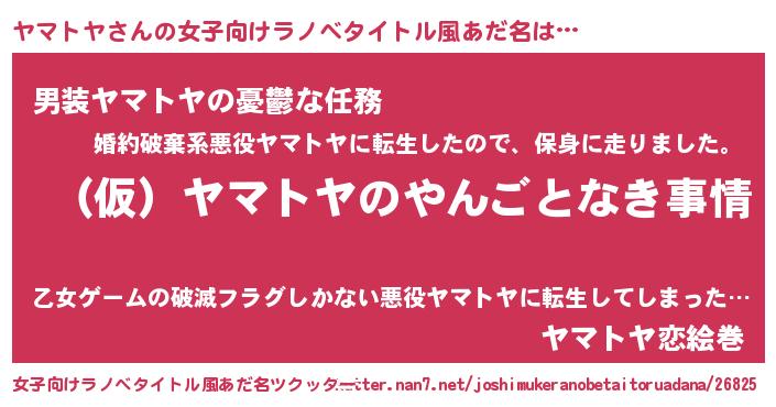 | 男性向けラノベタイトル風あだ名 | 『ヤマトヤの憂鬱』『ヤマトヤスレイヤー』 |