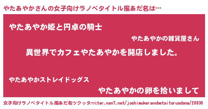 | 伝説のあだ名 | 『古文書に記された勇者やたあやか』 |