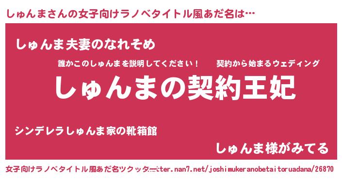 | 男性向けラノベタイトル風あだ名 | 『誰もが恐れるあのしゅんまが、ぼくの専属メイドになるようです。』 |