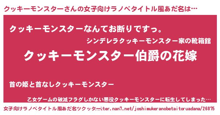 | 胡散臭い通販商品みたいなあだ名 | 『世界が平和になる高級そうな壺…その名も「クッキーモンスター」』 |