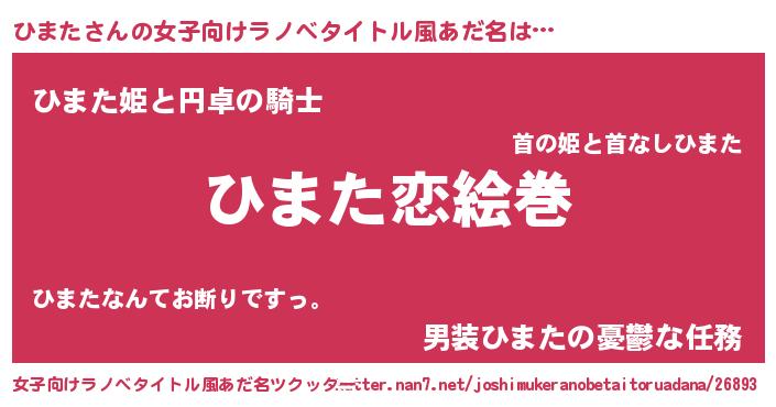 | ヘコむあだ名 | 『ひまふぇ~』『ひまた(小並感)』 |