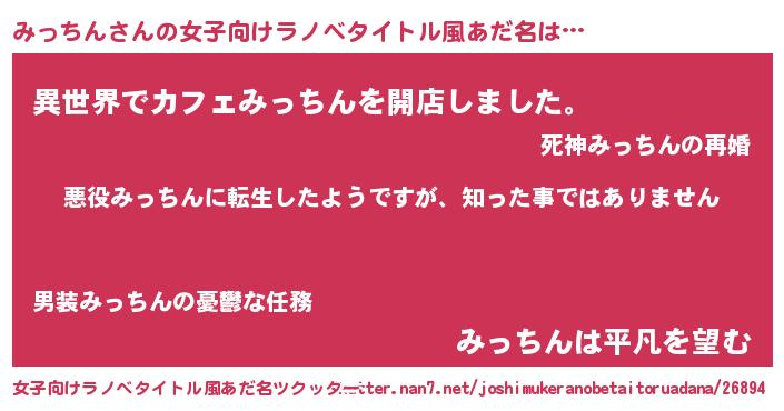 | 男性向けラノベタイトル風あだ名 | 『この素晴らしい世界にみっちんを!』 |