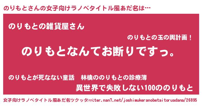 | 意味不明あだ名 | 『自称のりもと』『のりもとフォーエバー』 |