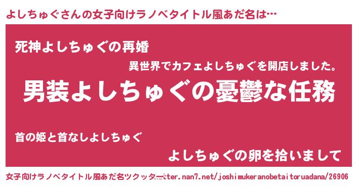 | 男性向けラノベタイトル風あだ名 | 『冴えないよしちゅぐの育てかた』 |