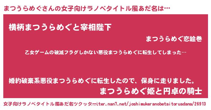 | 意味不明あだ名 | 『住所不定無職まつうらめぐ(59歳)』 |