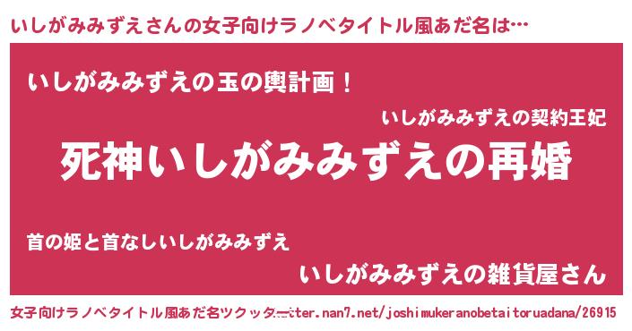| ヘコむあだ名 | 『酢こんぶ』『いしがみみずえ(笑)』 |