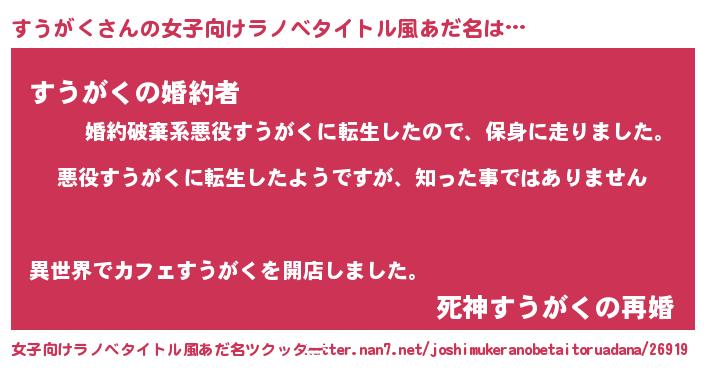 | ヘコむあだ名 | 『酢こんぶ』『すうがく(笑)』 |