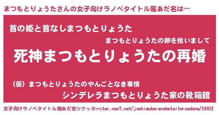 | 男性向けラノベタイトル風あだ名 | 『ノーゲーム・ノーマツモトリョウタ』 |