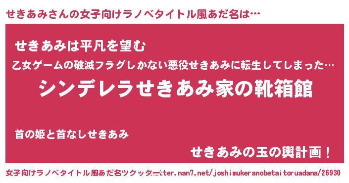 | 男性向けラノベタイトル風あだ名 | 『緋弾のセキアミ』『魔弾の王とせきあみ』 |