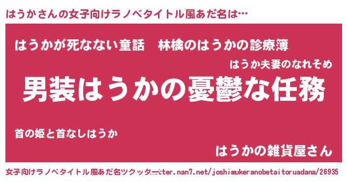 | 男性向けラノベタイトル風あだ名 | 『うちのはうかが世界を掌握している!』 |