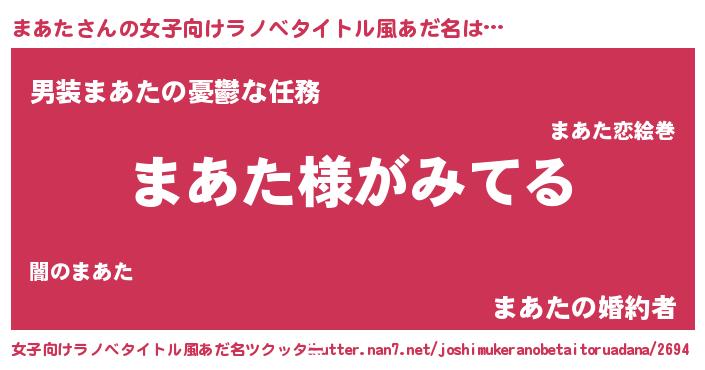 | 男性向けラノベタイトル風あだ名 | 『まあたの嫁は女の子じゃないと思った?』 |
