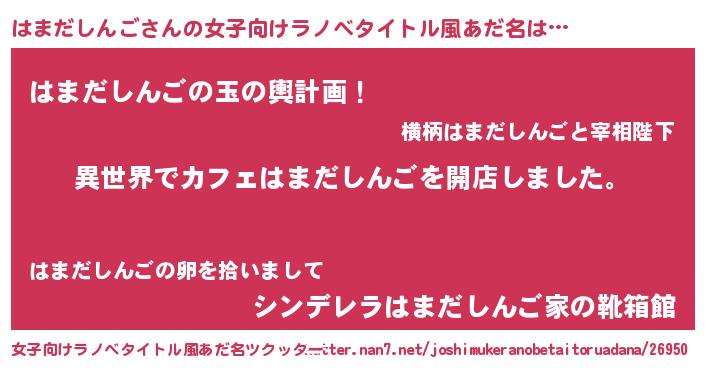 | 男性向けラノベタイトル風あだ名 | 『誰もが恐れるあのはまだしんごが、ぼくの専属メイドになるようです。』 |