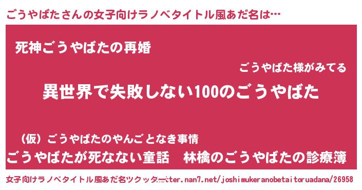 | 意味不明あだ名 | 『永久保存ごうやばた』 |