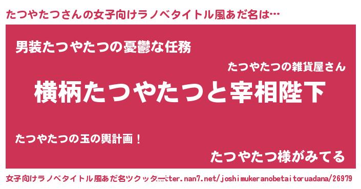 | 男性向けラノベタイトル風あだ名 | 『たつやたつに滅ぼされるだけの簡単なお仕事です』 |