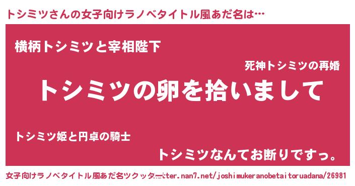| 恥ずかしいあだ名 | 『トシリンリン』『トシミツデラックス』 |