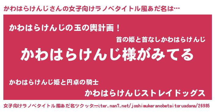 | ポケモン風あだ名 | 『ヒカワハラケンジ』『カワキング』 |