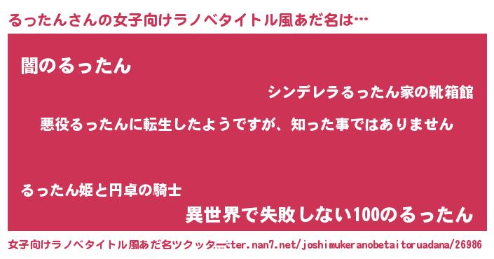 | 男性向けラノベタイトル風あだ名 | 『この素晴らしい世界にるったんを!』 |