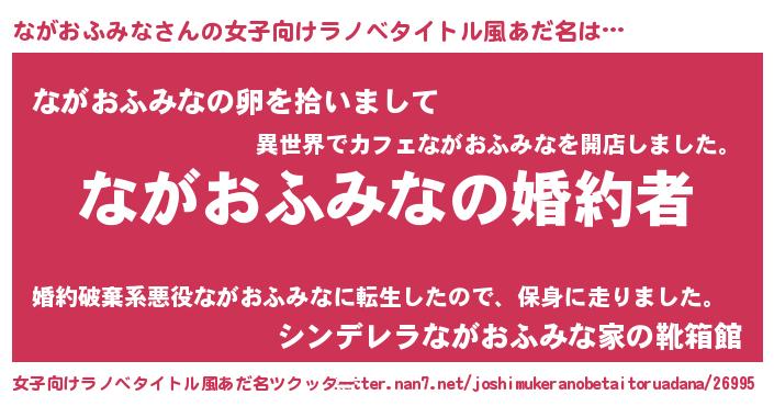 | 男性向けラノベタイトル風あだ名 | 『うちの娘の為ならば、俺はもしかしたらながおふみなも倒せるかもしれない。』 |