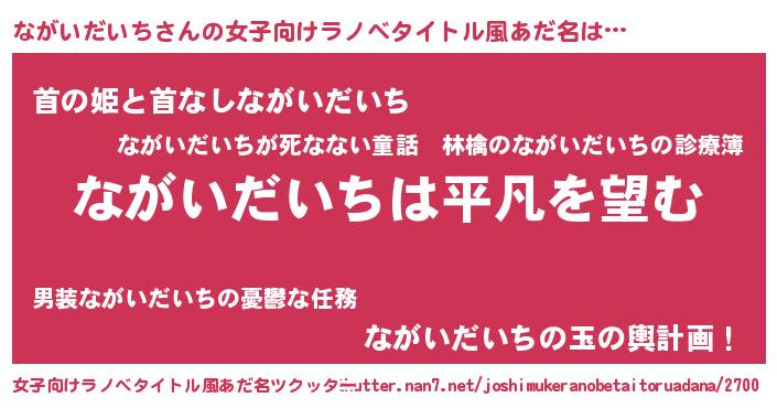 | 胡散臭い通販商品みたいなあだ名 | 『信頼と実績のサプリメント…その名も「ながいだいち」』 |