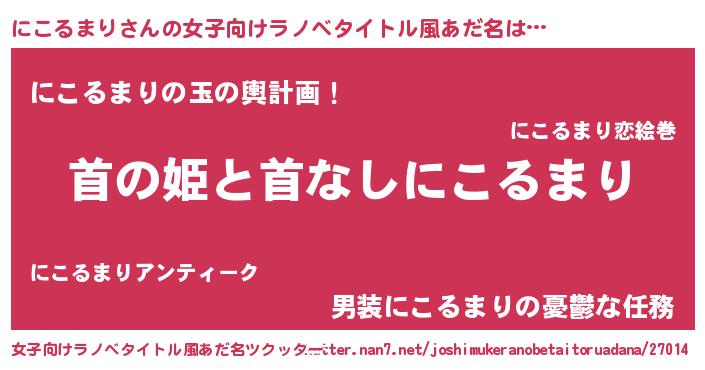 | 男性向けラノベタイトル風あだ名 | 『はたらくにこるまりさま!』 |