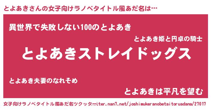 | 意味不明あだ名 | 『自称とよあき』『永久保存とよあき』 |