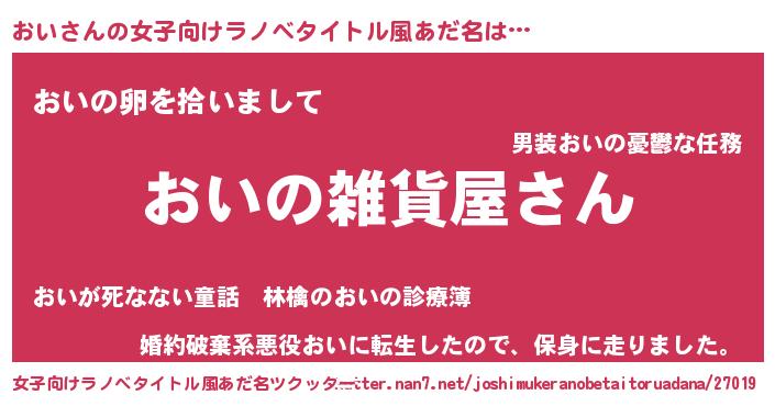 | 男性向けラノベタイトル風あだ名 | 『やはりおいの青春ラブコメはまちがっている 』 |