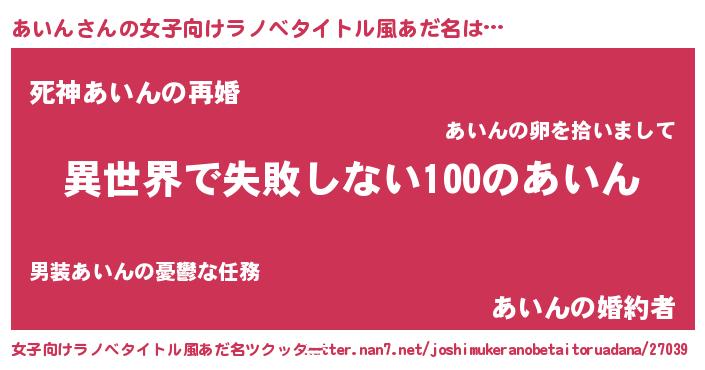 | 男性向けラノベタイトル風あだ名 | 『あいんという概念が存在しない退屈な世界 』 |