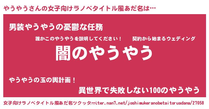 | ヘコむあだ名 | 『やうやう(笑)』『やうにー』 |