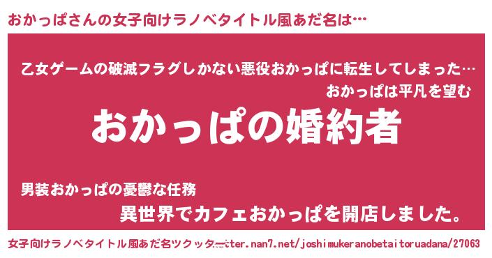 | 男性向けラノベタイトル風あだ名 | 『うちの娘の為ならば、俺はもしかしたらおかっぱも倒せるかもしれない。』 |