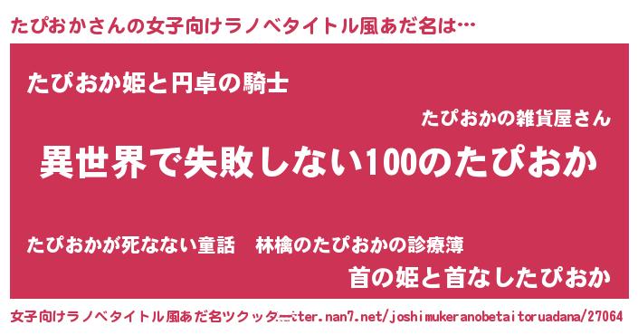 | 男性向けラノベタイトル風あだ名 | 『たぴおかという概念が存在しない退屈な世界 』 |