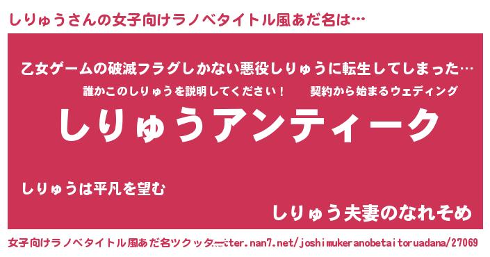 | ヒーロー風カッコイイあだ名 | 『サイバー戦士シリュウ』『仮面シリダー』 |