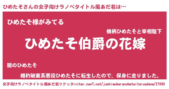 | 男性向けラノベタイトル風あだ名 | 『やはりひめたその青春ラブコメはまちがっている 』 |