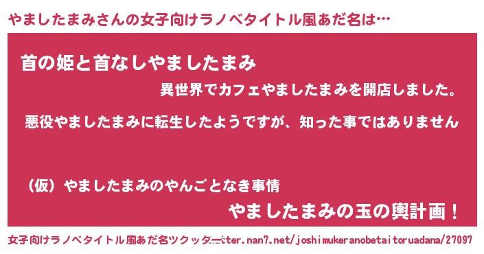 | 男性向けラノベタイトル風あだ名 | 『この素晴らしい世界にやましたまみを!』 |