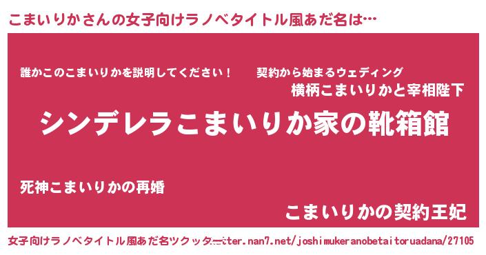 | 胡散臭い通販商品みたいなあだ名 | 『モテモテ間違いなし霊験あらたかなお札…その名も「こまいりか」』 |