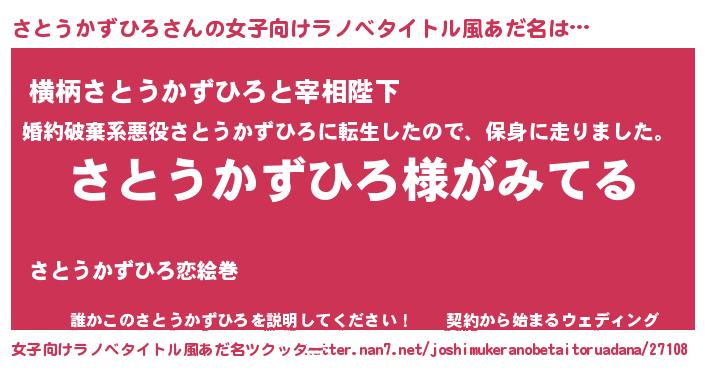 | 男性向けラノベタイトル風あだ名 | 『さとうかずひろの嫁は女の子じゃないと思った?』 |