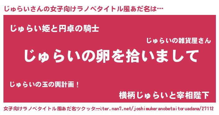 | 男性向けラノベタイトル風あだ名 | 『ダンジョンにじゅらいを求めるのは間違っているだろうか』 |