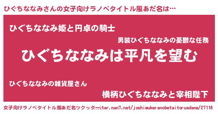 | 胡散臭い通販商品みたいなあだ名 | 『信頼と実績のネックレス…その名も「ひぐちななみ」』 |