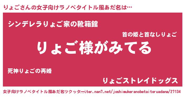 | 男性向けラノベタイトル風あだ名 | 『りょごの嫁は女の子じゃないと思った?』 |