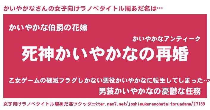 | 男性向けラノベタイトル風あだ名 | 『ノーゲーム・ノーカイヤカナ』 |