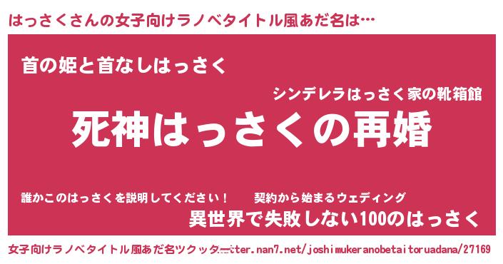 | 男性向けラノベタイトル風あだ名 | 『ノーゲーム・ノーハッサク』 |