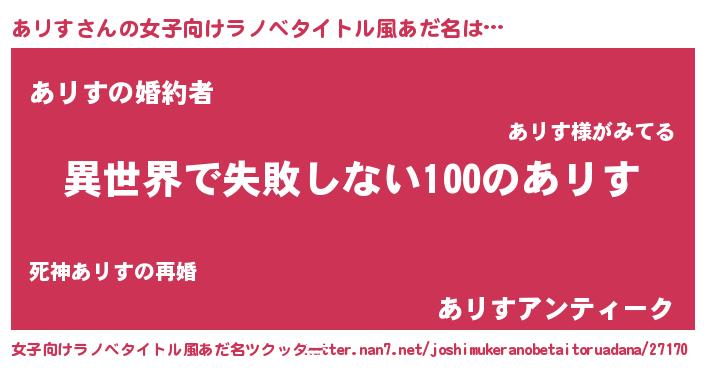 | ファンタジー風あだ名 | 『アリディッシュ』『エターナルアリスー』 |