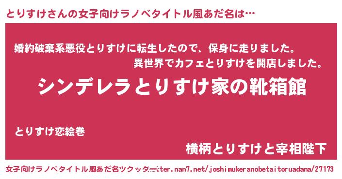 | 胡散臭い通販商品みたいなあだ名 | 『絶対に幸福をもたらす健康食品…その名も「とりすけ」』 |