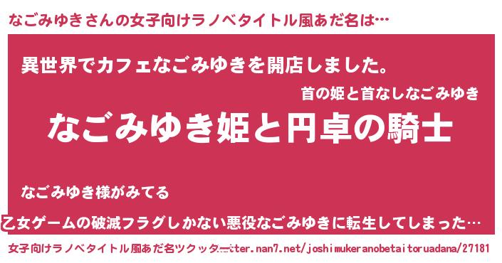 | 男性向けラノベタイトル風あだ名 | 『ナゴミユキアートオンライン』 |