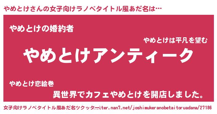 | 意味不明あだ名 | 『自称やめとけ』『やめとけフォーエバー』 |