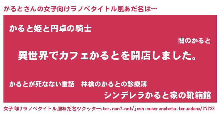 | 男性向けラノベタイトル風あだ名 | 『誰もが恐れるあのかるとが、ぼくの専属メイドになるようです。』 |