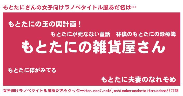 | 男性向けラノベタイトル風あだ名 | 『やはりもとたにの青春ラブコメはまちがっている 』 |