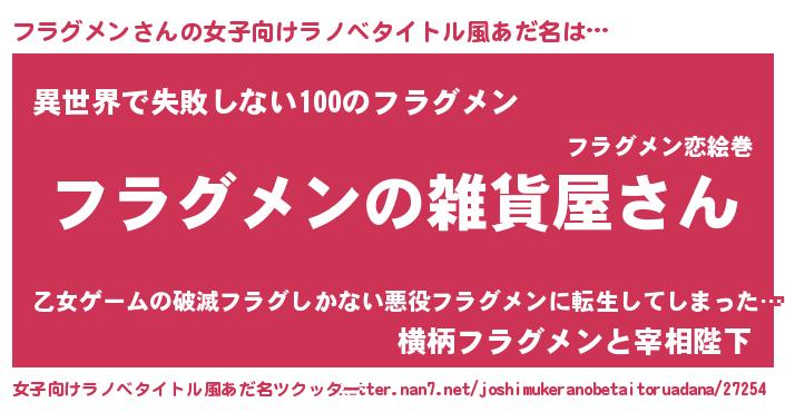 | 男性向けラノベタイトル風あだ名 | 『やはりフラグメンの青春ラブコメはまちがっている 』 |