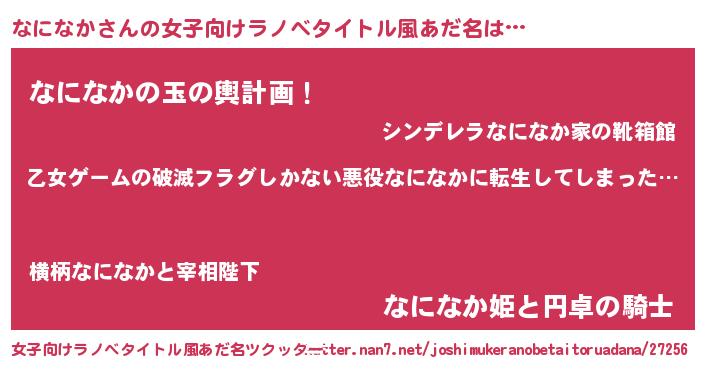 | 男性向けラノベタイトル風あだ名 | 『魔弾の王となになか』『なになかの憂鬱』 |