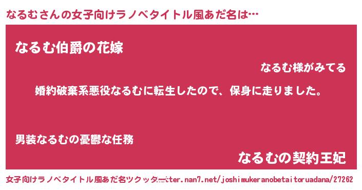 | ファンタジー風あだ名 | 『ユリナルヴァット』『ナルディッシュ』 |