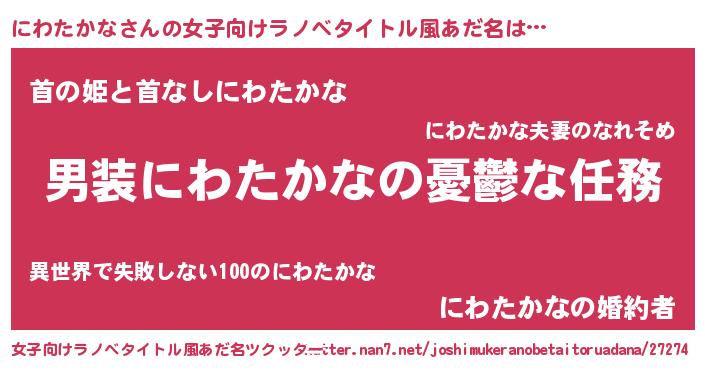 | 男性向けラノベタイトル風あだ名 | 『うちのにわたかなが世界を掌握している!』 |